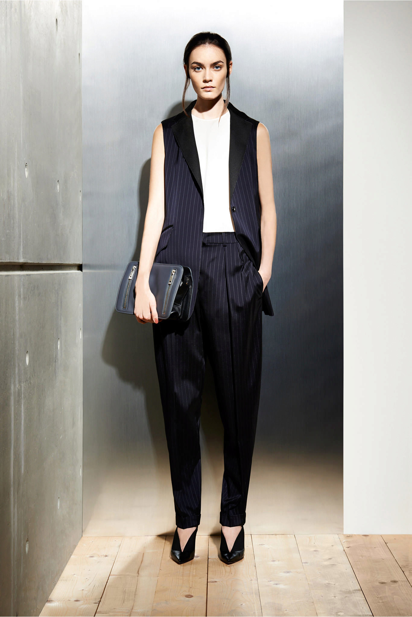 If it is a suit for publication, it can be worn directly on the naked body, exposing the neck and collarbone. The image will be discreet and at the same time sexy.
