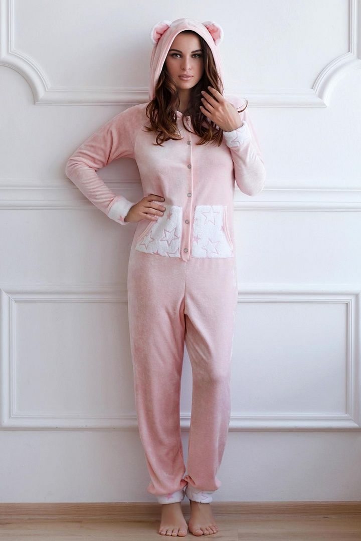 Modern girls try to look at home no less attractive. As a homemade clothing, you can choose a stylish one-piece or combined suit in which you will be warm and cozy. Young girls will surely like velor suits with ears, in which they will look like a funny bunny or a bear cub.