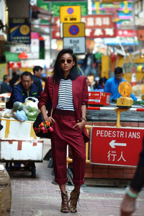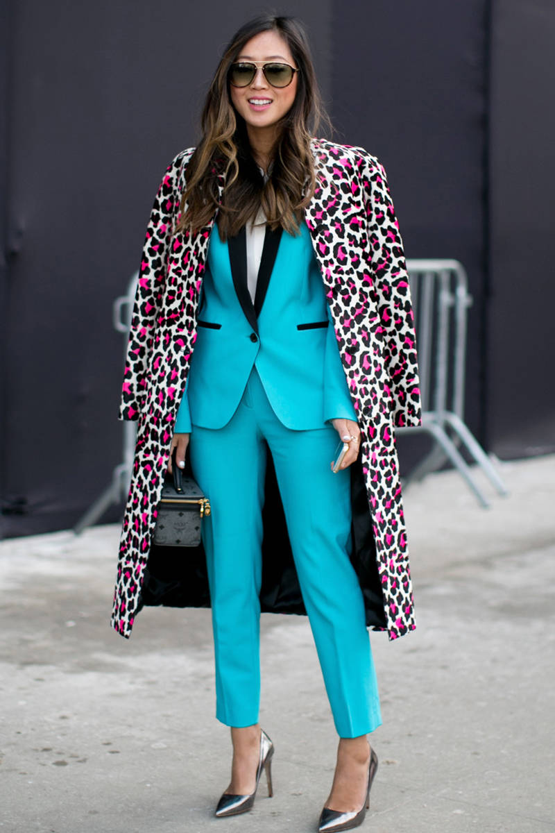 In everyday street-style images will look good burgundy, green, blue, turquoise, pink.