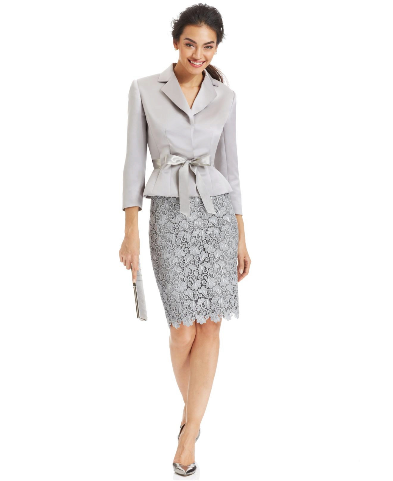 For an evening out, you can choose an exquisite lace or jacquard suit that will emphasize your femininity and refinement.