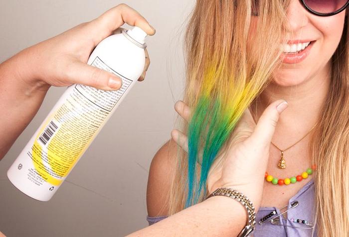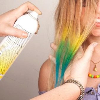 Sprays are nothing but varnish with pigment. This paint is washed off immediately when washing hair. Along with fixing hairstyles, they allow you to vary its color. This is very popular with young people who adore bright experiments with their appearance. As for crayons, pencils and mascaras, these are interesting options in an equally interesting form.They are not intended for full coloring: they are products for highlighting the color of individual strands.
