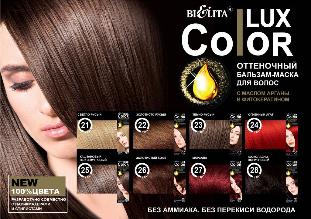The domestic manufacturer offers its fans a line of non-ammonia paints, which includes more various natural shades. As part of this cosmetics for hair contains panthenol and keratin. These are cosmetics with olive and avocado oils. The company's products are valued for simplicity and ease of application: the professionals use these paints in the salons. The paint does not flow, it appears evenly.