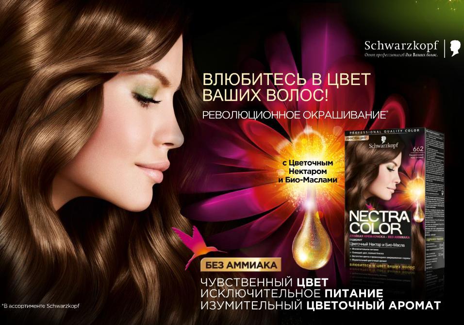 This manufacturer has developed three lines of non-ammonia colors at once: “Essential Color”, “Perfect Mousse”, “Nectra Color”. The production of the first line includes about 20 different shades of dyes containing plant extracts. This cosmetics is considered to be caring, with a restorative effect. The second line is suitable for home use, these paints contain soy proteins and orchid extract. "Nectra Color" attracts the attention of customers by the fact that it smoothes the hair, nourishing them with useful substances.