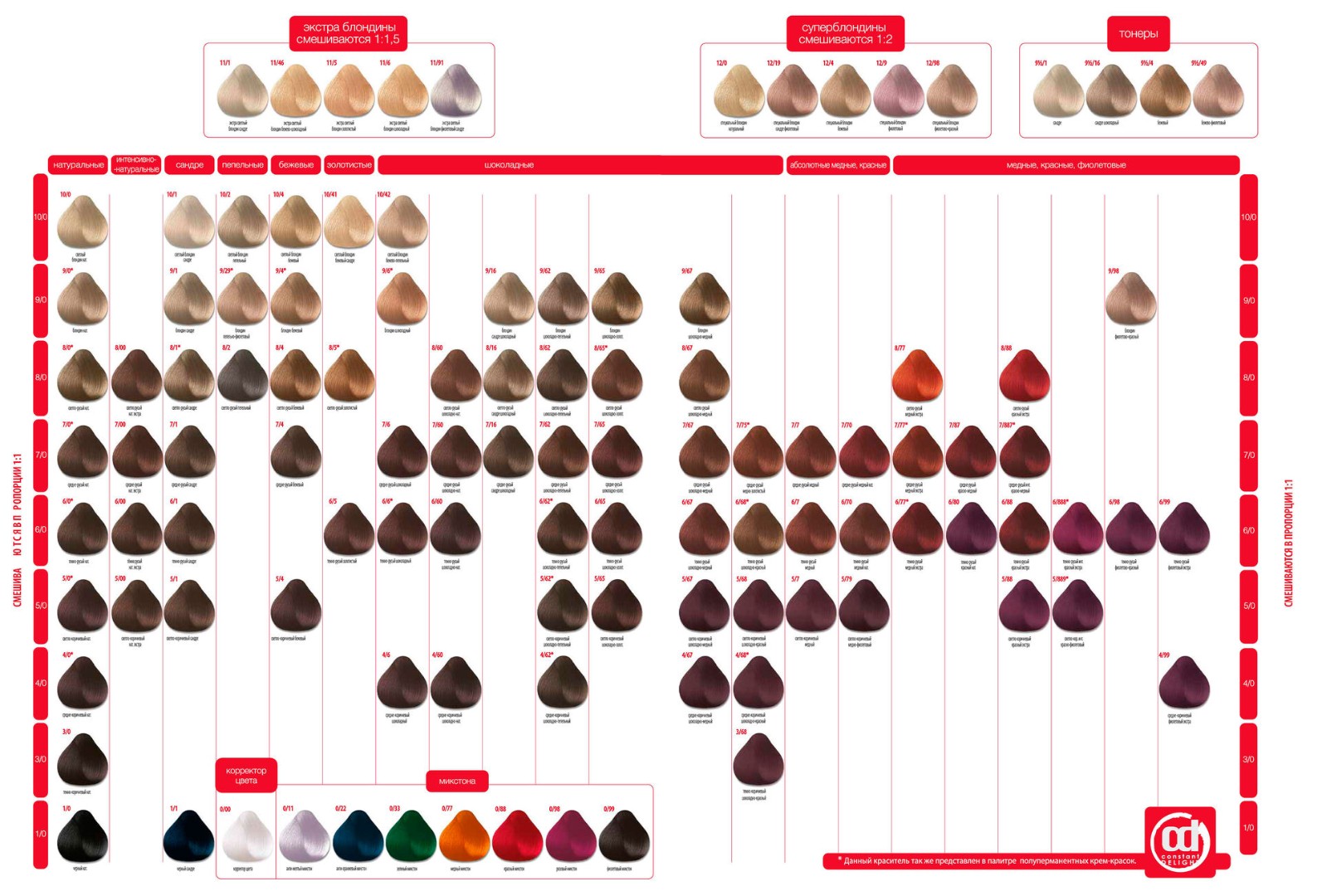 The palette of the most common dyes from CD offers 40 shades for consumers to choose, which can satisfy the exacting taste of any customer - here you will find snow-white and most popular light brown shades, as well as rich dark colors.