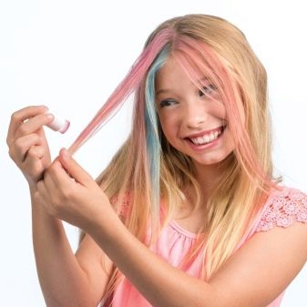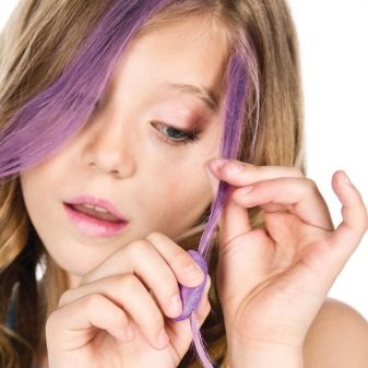 Children's paint is considered harmless to hair, as it changes their color temporarily, washed off with the help of shampoo, gradually losing the saturation of the original shade. It is sold in the form of a ready set for painting.