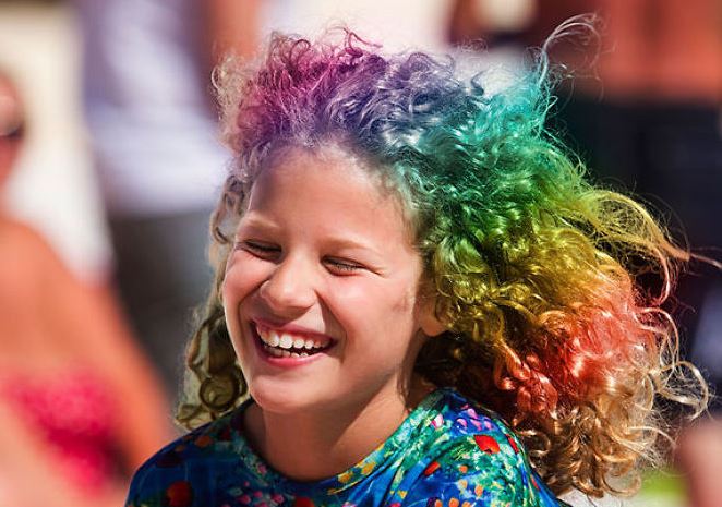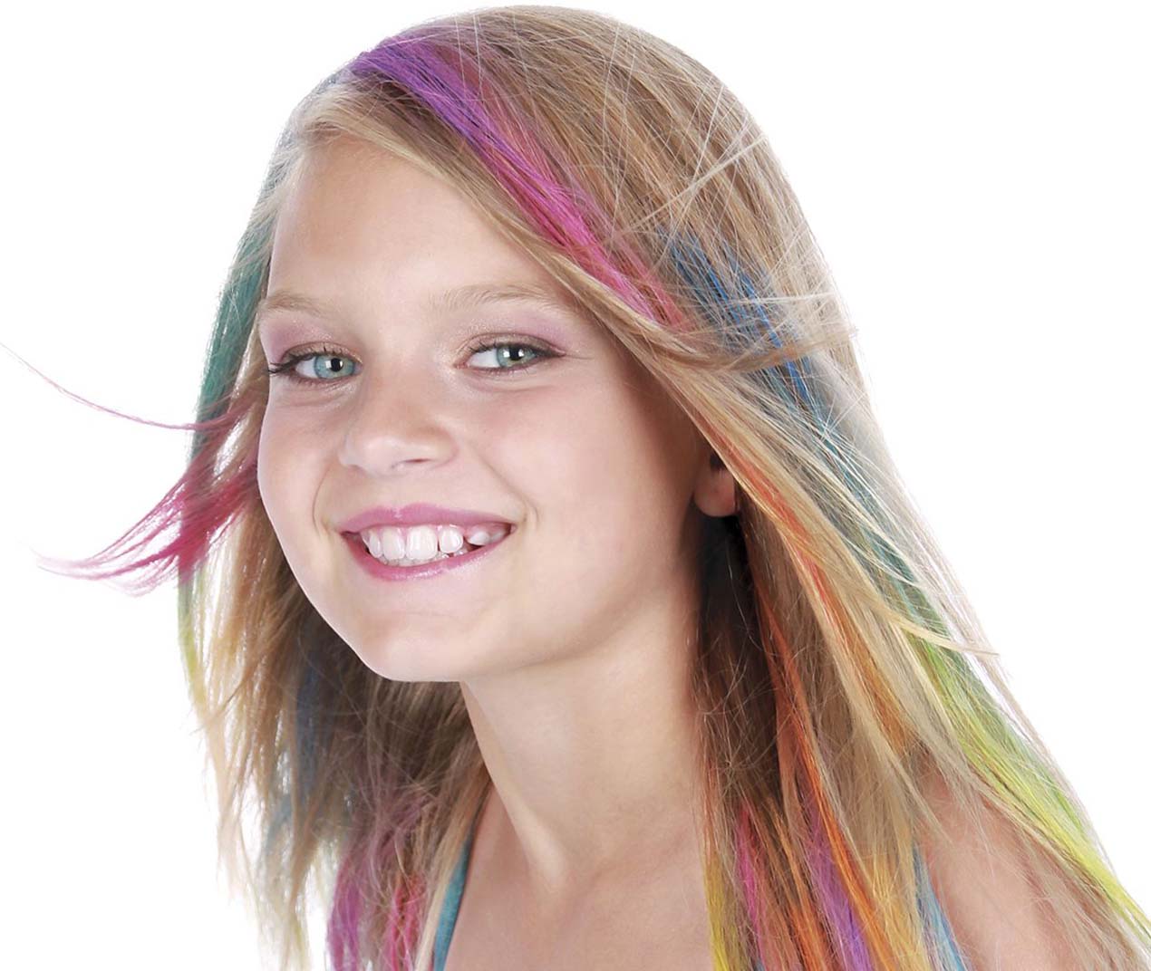 - Some varieties of water-washable children's hair dyes have beneficial effect on hair and scalp. And because they are not only tint the strands, but also cure them, as well as normalize the sebaceous glands. In the process of coloring the hairs do not lose their moisture, besides they get an enveloping protection from the outside, which protects them from the destructive ultraviolet.