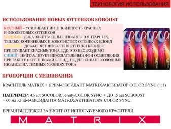 Matrix is a fast-growing brand of professional hair dye products in the world of hairdressing. The first dyes, produced under this brand, were enthusiastically welcomed by ordinary women and received high marks from professionals due to the variety of colors and decent quality combined with an acceptable price.