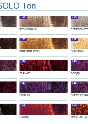 For a light toning company offers coloring balms Solo Ton. There are 18 podtones in the collection, all of them are washed off 6 times. The main objective of this product is to maintain the saturation of the natural shade of the hair. If the girl decided on color highlighting, then the Solo Contrast line, which offers high-quality toning of curls, is the best for self-fulfillment.