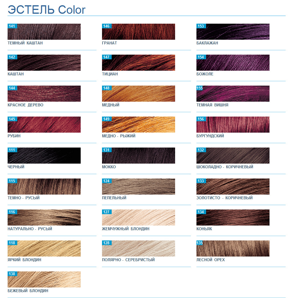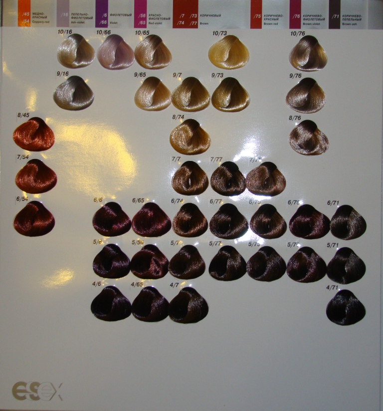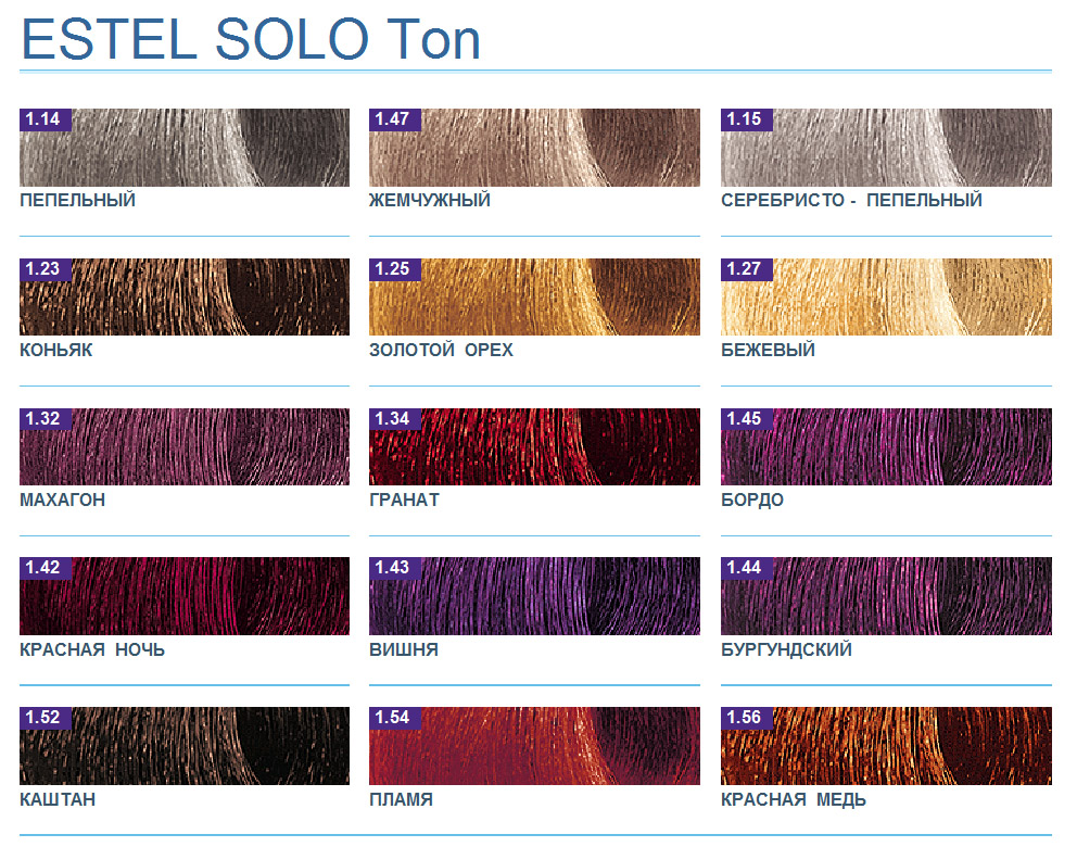 It is difficult to describe the entire palette of colors from the company, but it is possible to divide the shades into groups according to the main color. In the Estel collections are presented about 113 basic colors, for blondes - more than 10 and the same correctors. Bright tones are made in just 5 versions. And also presented a pastel palette, which collected only 4 colors. I suggest dark brown women to use pure shade as a basis or use it with a reddish tint. Ordinary brown-haired women have more choice in this direction, because, besides the proposed options, there is a very interesting combination of violet and brown, just brown or especially for gray curls.