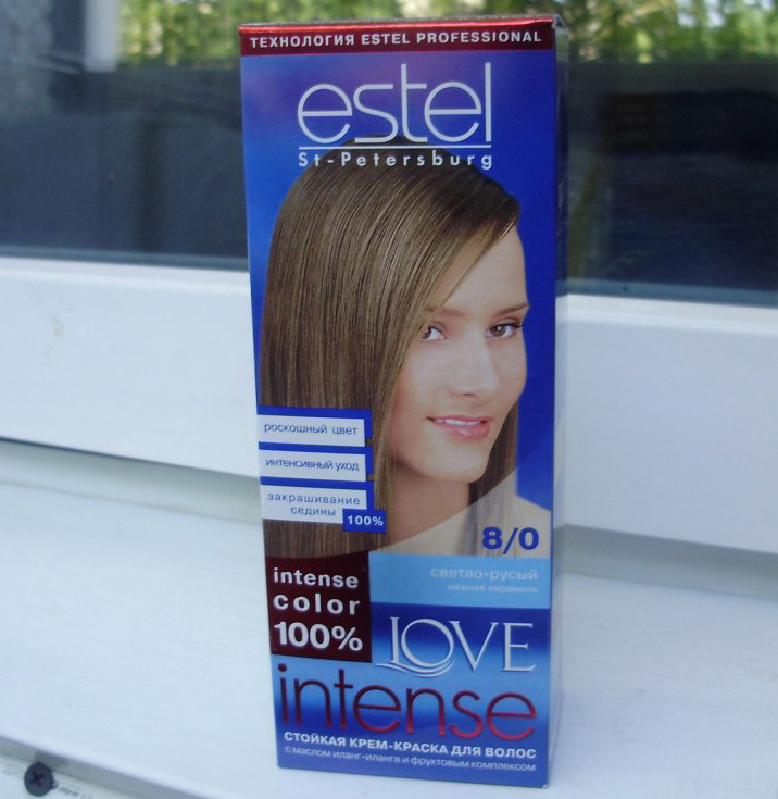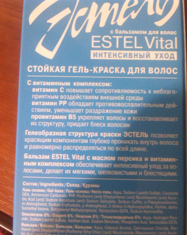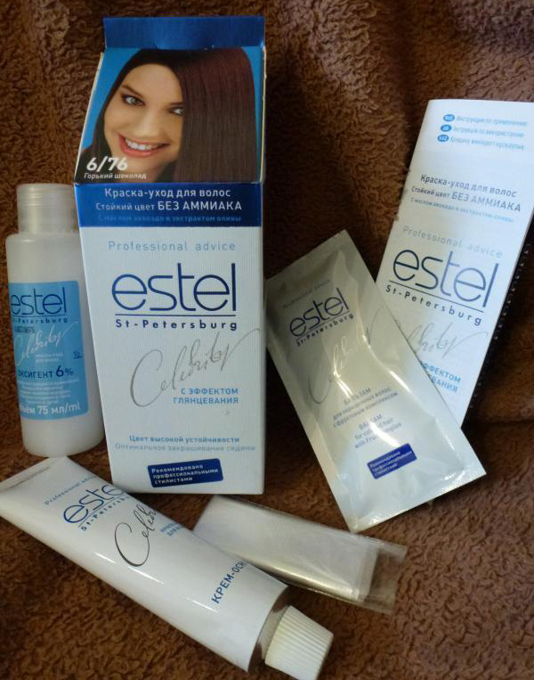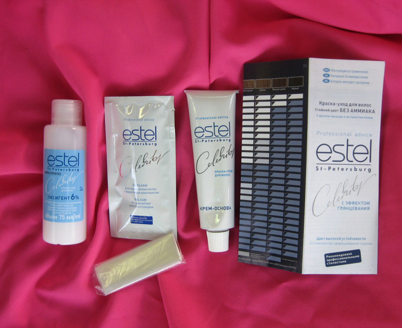 - Estel has a very comfortable paint texture, it is simply applied to the hair, it does not flow down afterwards; there is even a shimmering pigment in the composition, it was he who made it possible to create the right consistency;