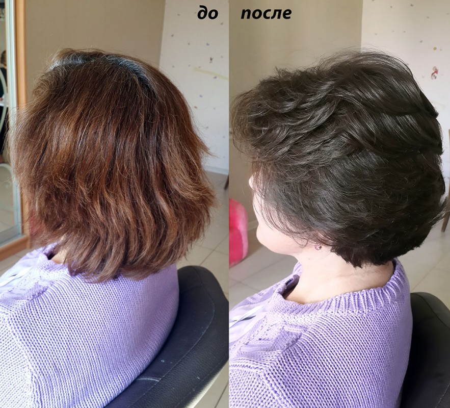 If the hair is painted in a monochrome technique, then they look as natural as possible. From the side it doesn’t immediately become clear that a woman has recently used a caring composition, but it is important to choose the right color so that it combines as much as possible with the natural one.