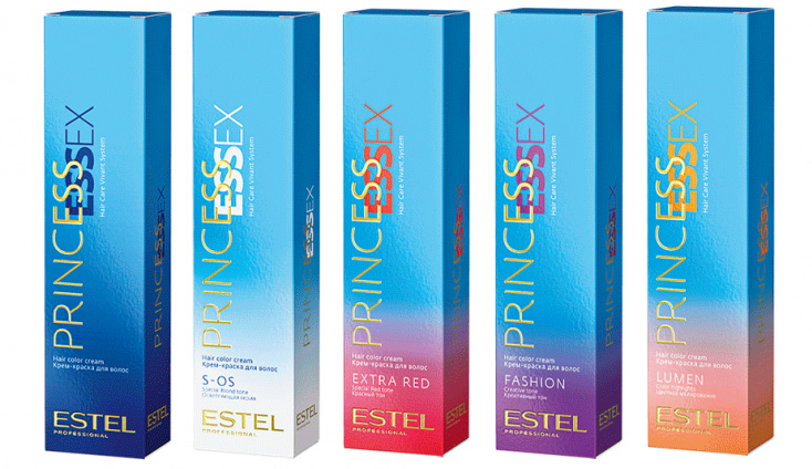 It all started with the production of the Princess Essex line, which was subsequently divided into several groups. The most commonly used shades are collected in Essex Professional. Depending on what percentage the wizard chooses the oxidizer, this dye is used for both persistent dyeing and light tinting of the hair. Immediately there are super-brighteners, which are essential for women who would like to turn into a blonde, regardless of the natural tone of the curls. For young people, the manufacturer presented in the same line a trendy collection used for color highlighting, as well as proofreaders.