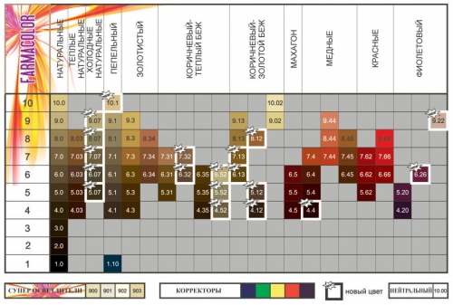 These are the basic shades, and already from them there is a classification of tones. The first number in the marking is an important destination. It denotes the color that is predominant in the paint. Further tone is determined by the intensity and nuances of color.