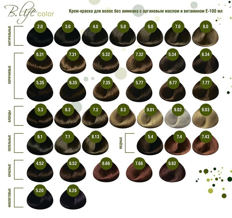 The natural range is presented in shades of black, chestnut, blond and blond. A lot of cold and warm tones in the palette help to choose something that is especially suitable for the type of person, and to give the skin a glow, and to the image - a unique charm.