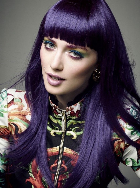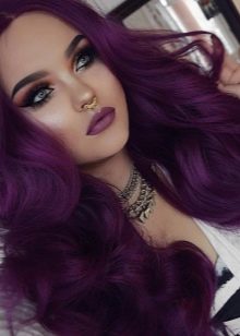 Purple hair can endow a feminine image with uniqueness, without negating the beauty and femininity. It is impossible to say with absolute certainty that this is the color for any girl. He is capricious, and even on two women can look completely different, emphasizing the effectiveness of one and destroying the image of the other. At the same time, natural hair color is of great importance: ideally violet dye will suit owners of a cold natural shade of curls.