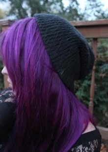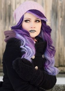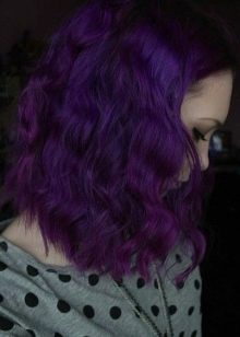 Color is not among the universal: it is quite contradictory and demanding in the female color type. In addition, the choice will be influenced by age: purple hair color is irrelevant both in the nursery and in the elderly set. In both cases, it looks ugly. But if for a girl it can be a special children's paint, washed off with water, then in the image of an old woman the purple color casts a longing. It seems that the lady used purple ink, and this devalues the beauty of both the hair and the overall appearance.