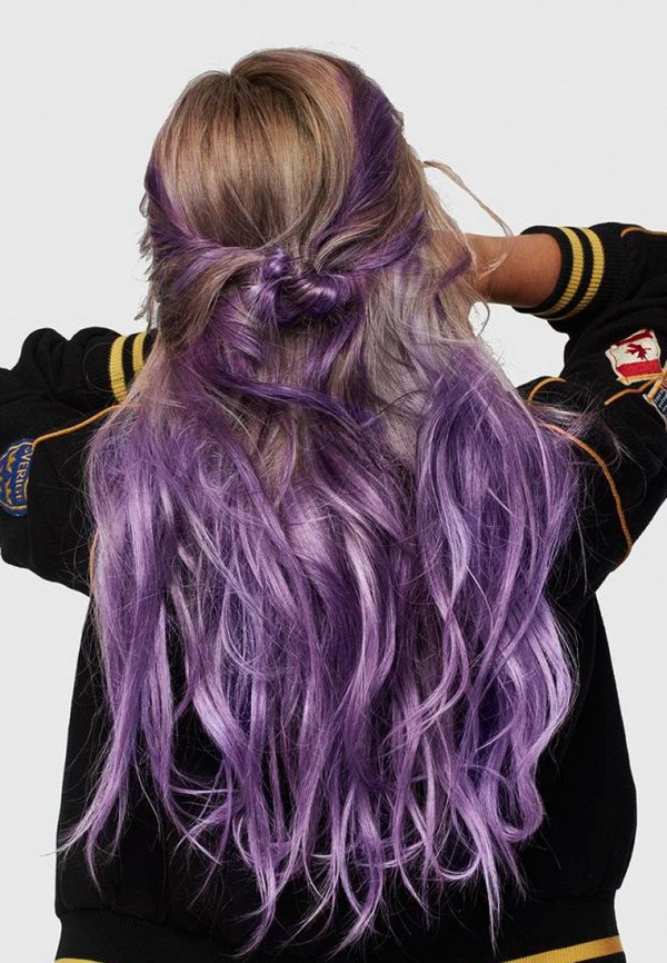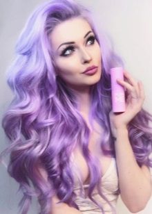 Hair dyeing in purple color can be different depending on the method taken as a basis. It should be noted that the unusual tone is washed off the hair faster than other shades of the color palette. This is convenient for fashionistas who adore frequent mood changes and trying to shock others around with fresh experiments with their appearance. Moreover, hair dye can have the most diverse forms, ranging from the usual creamy texture or even wax to crayons, powder, mascara, spray or even colored purple hairspray.