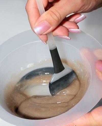 The first step is to prepare the composition. A tube of coloring cream should be squeezed into a bottle-applicator and shaken thoroughly until a homogeneous material is obtained, which, after cutting off the lid, should be dyed. Hair should not be washed before the procedure, they should be dry.