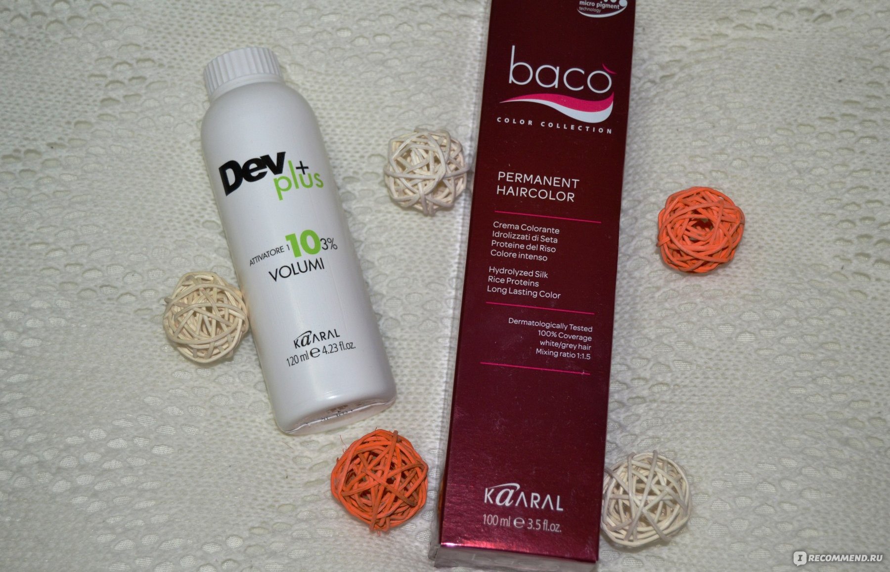 - As part of Kaaral Baco Color Hair-Dye is silk extract hydrolysates. Such an ingredient can be obtained from a double silk silk cocoon. This series is performed using the latest technology and allows you to paint over gray hair well. Also, the tool will strengthen and moisturize the strands.