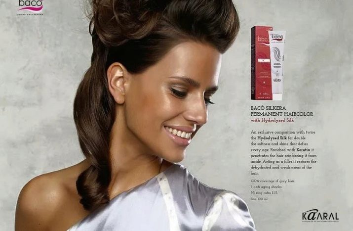 - In the composition of dyes Kaaral Baco Silkera Permanent Hair Coloring silk hydrolyzate and shea butter are available. Pigment ingredients allow you to paint over gray hair, and the viscous consistency of the product treats each hair very carefully and as efficiently as possible.