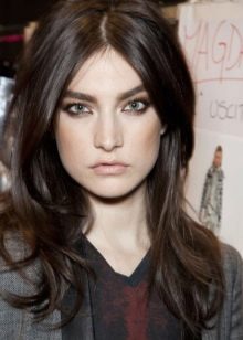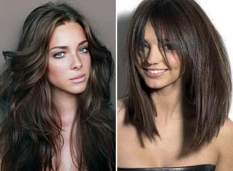 Dark brown hair tone brings to the image of brightness. Saturated colors are especially well combined with green and brown eyes. Dark color emphasizes all the flaws of the face, so the owners of light skin should choose the appropriate shades for hair coloring, otherwise the focus will be on wrinkles. If you use the color a little lighter than the natural tone, the rejuvenating effect is guaranteed to young ladies of mature age.