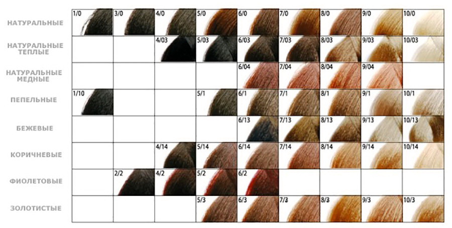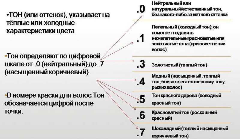 Hair dye, regardless of the manufacturer, has a tone number. Starting from one, incremental numbers indicate a transition from a very dark color to a lighter shade. The number "1" means black, and the last number in the numbering captures a saturated blond. Intermediate numbers show shades in descending order: from hot black to very light colors.