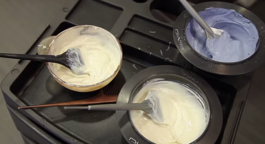 - the curls are ready for a new color after bleaching or completely rinsing off the previous color;