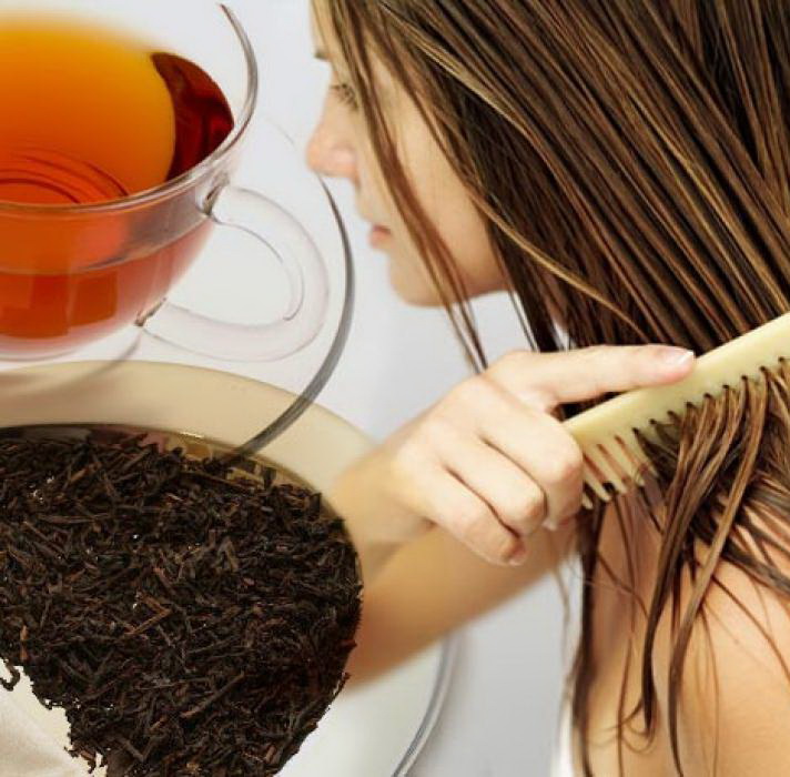 - A tablespoon of tea or coffee is poured with boiling water, applied in half an hour to the head and held for 15 to 45 minutes, depending on the desire to get a little or too rich tone.