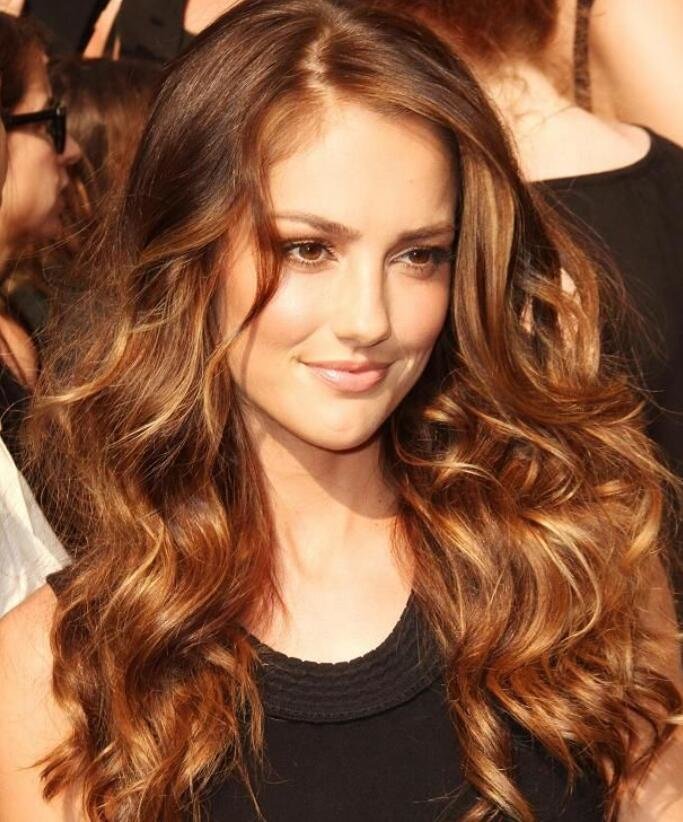 The owners of dark skin is best to choose a darker flavor. Brunettes are recommended to add red notes when coloring brown. The hazel glitter looks perfect on straight strands of black-browed dark-faced girls. Golden highlight gives brown-eyed beauties with olive skin romance and lightness.