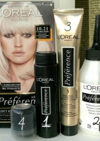 - if half of the locks are gray, it is necessary to use a 6% oxidizer that comes with L'Oreal Preference;