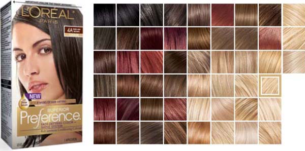 Hair colors L’Oreal Preference: a palette of colors and instructions for use