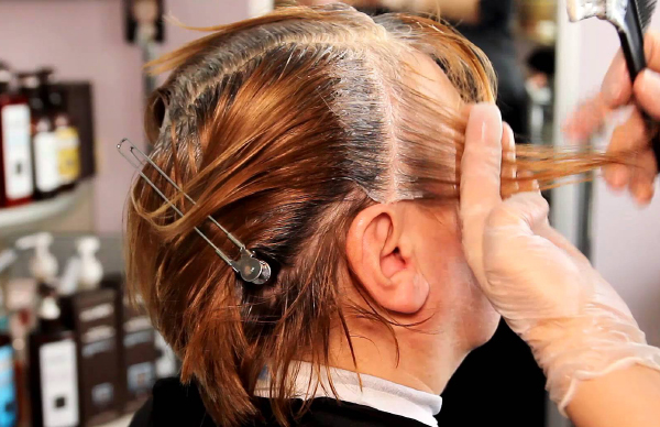 In order to dye the regrown roots, it is necessary to do approximately the same thing - mix all the components in a container, process the skin and prepare a cape so as not to stain the clothes. Before starting to stain the roots you need to sprinkle with water. This will color them evenly.