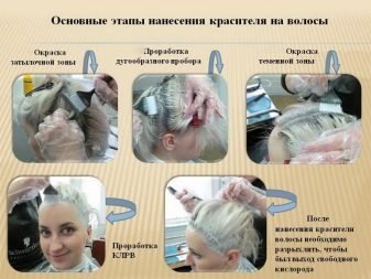 When strands are brightened, a dye is first applied over the entire length. It should be left to impact for 15-30 minutes, controlling the intensity of heat. Further, the composition is applied at the roots, here the staining lasts 30-60 minutes.