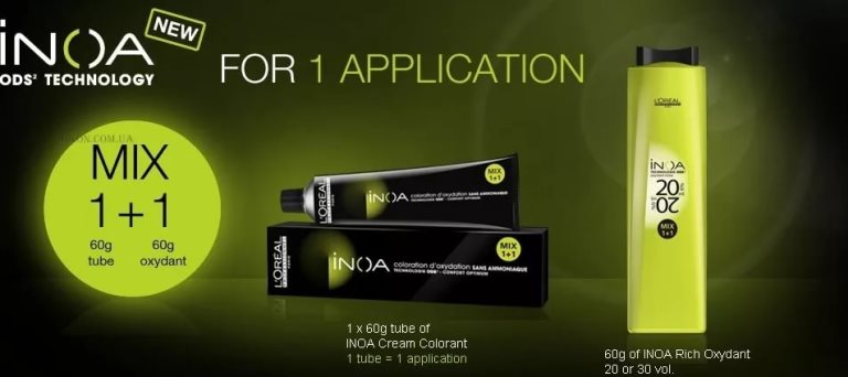 Such a set is called “Inoa Mix 1 + 1”. Here the process of preparing a mixture for dyeing will require only the addition of an oxidizing agent. It is suitable for home dyeing, is characterized by versatility in use, ease of application.