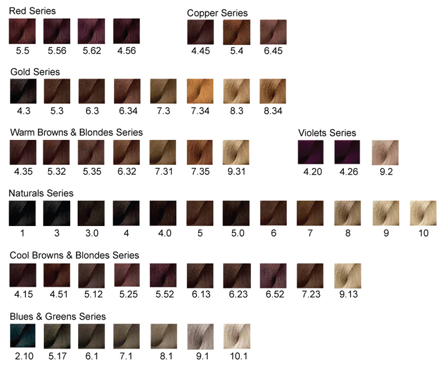 - Cool shades. For natural and dyed hair are the options for colors, rich refined shine. 29 harmonious tones in the palette are selected for owners of light, brown, brown hair in varying degrees of blackout.