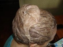 Hair divided into two zones from the forehead to the back of the head and from ear to ear. Apply paint to these areas, then move on to applying paint on the back of the head. It is necessary to take a thin strand, on the very roots to distribute a small amount of paint and fix it on the top of the head so as not to interfere. Thus, the product will be applied to all hair roots evenly. Now the paint that has remained, should be applied to the entire length of the hair with a comb, and the hair fasten at the top. Due to the fact that the hair in the occipital zone is not painted very quickly, hairdressers are advised to start with it.