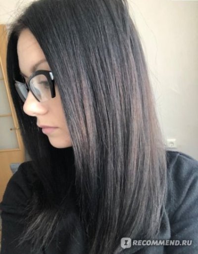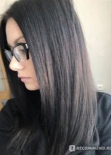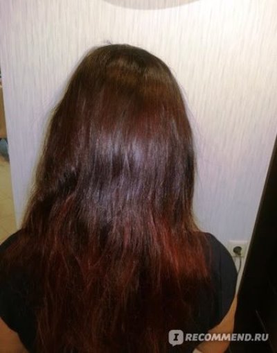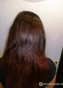 Negative qualities were noted, the fact that the paint is very inconvenient in application, its consistency is not creamy, but rather dry. And the fact that the hair after dyeing has become very dry. And when using darker shades of “Fiery chestnut”, the following positive features are noted: