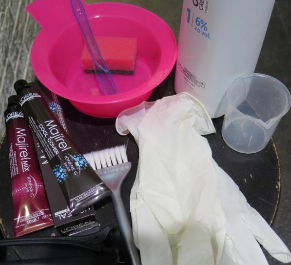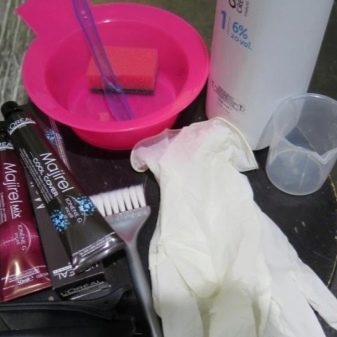 Before painting it is necessary to prepare a set of tools and components. A glass or ceramic cup used to dilute paints and gloves. Looking for a comb, simple and with a sharp end. Color-matched dye with an oxidizing agent, fixing shampoo, balm.