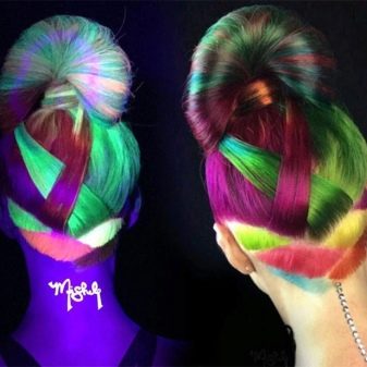 Today, on the shelves of stores you can find a lot of different hair colors, which differ not only in composition, but also in a palette of shades. One of the most original means for coloring is neon hair dye, which glows in the dark. The pros and cons of this composition, as well as the rules for its use will be discussed in more detail in this article.