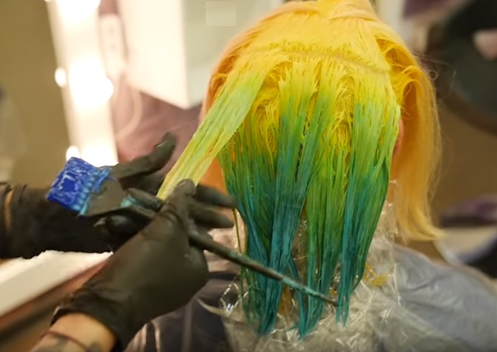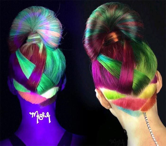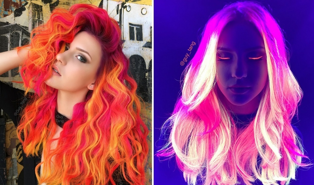 The technique of applying neon hair dye is shown below.
