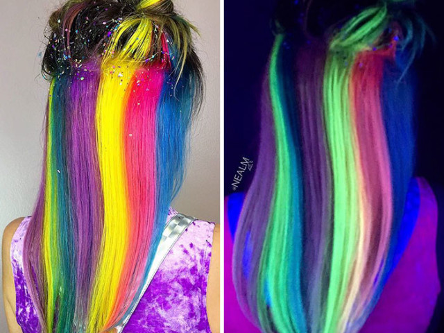 It is worth noting that with natural lighting, colored strands, although not glowing, will look no less bright and spectacular.