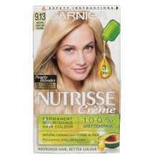 - Nutrisse is medium golden brown. The magic that the dye creates on blond hair. Natural oils in the composition make the hair soft and elastic. After coloring the blonde receives the shining color from roots to tips. Hue is able to completely paint over gray hair.