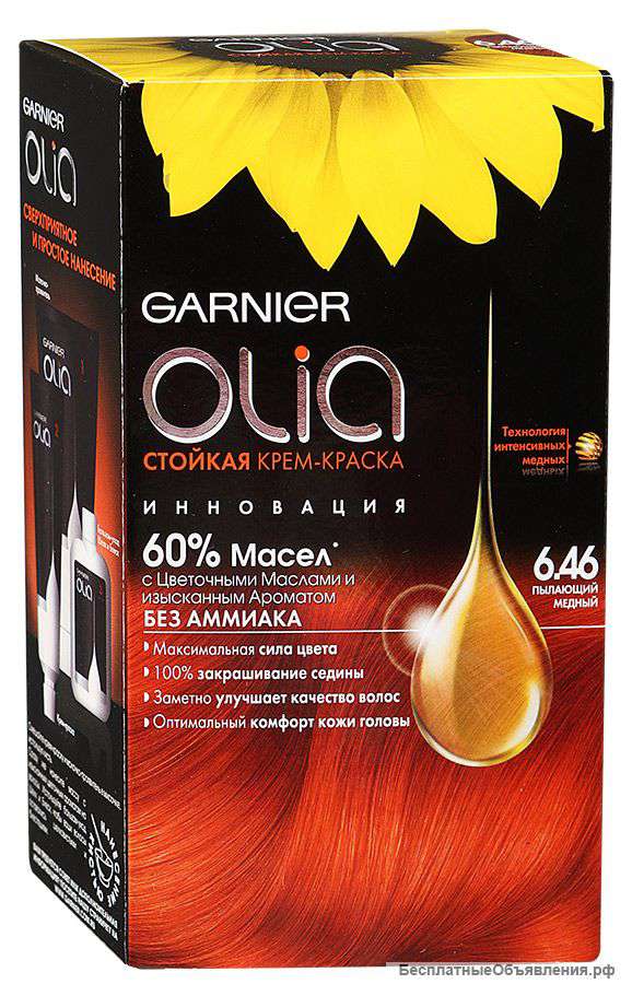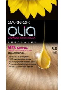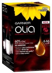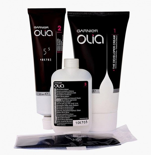Garnier Olia Hair Color uses innovative patented technology that delivers lasting color through the oily component, rather than through ammonia, causing hair damage. It is he who has a sharp and unpleasant odor, which is difficult to inhale when painting. In turn, the oils help the hair to stay healthy, maintain an attractive appearance, give them strength.