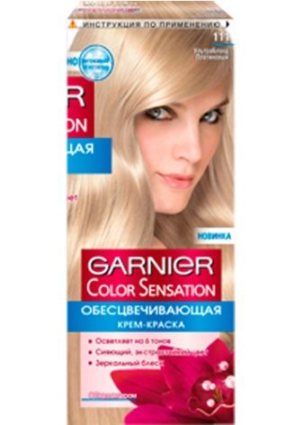 When Garnier Color Sensation appeared on the market, it became a sensation, as high-quality natural ingredients were included in the product. The lineup includes many extra-resistant colors that look impressive on hair. Gray hair is painted over with 100% success, and the paint itself is applied to the curls very simply, which is why it has gained particular popularity among women who prefer to make dyeing themselves at home.