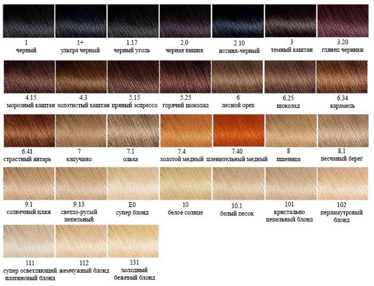There are only 4 blond shades and 3 red shades. 4 colors are also offered to chestnut palette lovers. Black only 7 colors, among them there are deep shades and specular.