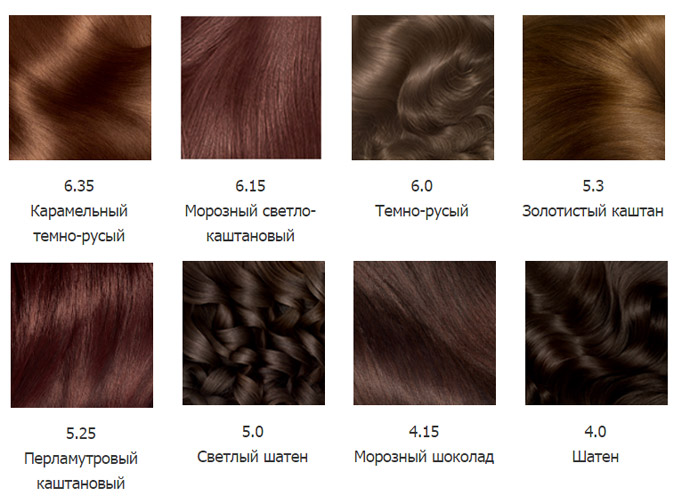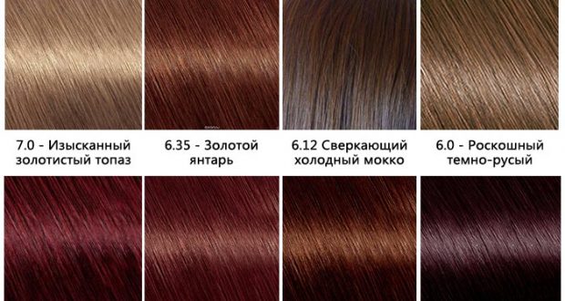 This is by no means the whole palette offered, but the most demanded among the fair sex. In the collection “Garnier Color Shine” there are 17 shades, among which only 5 for blond curls, including blond, 6 colors for chestnut gamma, and chocolate in the same color.
