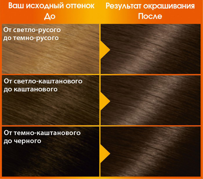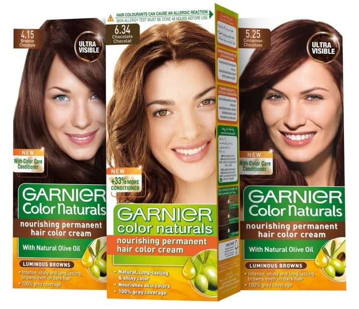 Garnier paints delight women with their long-lasting effect and natural look of shades. Each color gives the hair a rich and multi-shine. Designed with the perfect combination of components, they do not cause irritation of the scalp and gently affect the curls. Some series include natural shades: black, chestnut, blond.