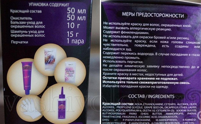 Since permanent dye is a strong color in terms of its properties, it is necessary to use it with extreme caution so as not to damage the scalp. For this, the composition is prepared and applied to the strands strictly according to the instructions from the manufacturer. The disadvantages of this tool also include: