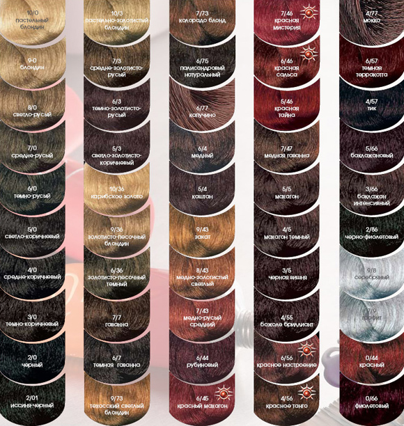Not to mention another well-known brand Schwarzkopf called Palette. Such paint is produced in a palette represented by 20 shades. There are only 14 tones of mousse in this line. The stability of the mousse composition is only enough for a couple of weeks, but the cream compositions show themselves to be more stable. The paint contains special oils that nourish the hair. Thanks to these components, the curls do not look too dry.