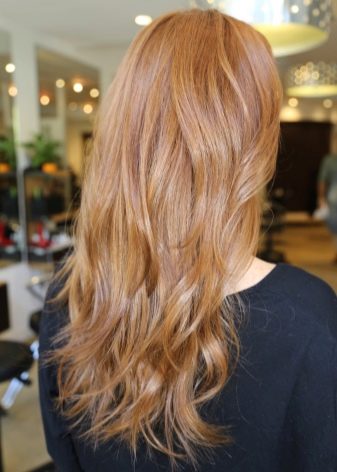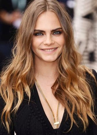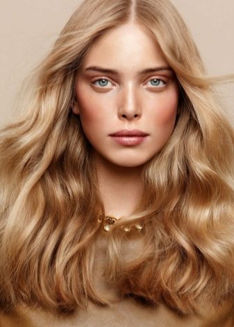 This is a very popular shade, equally expressively emphasizing both dark and light eyes. The skin color here is not decisive, it can be said that gold is a rather universal tone. It looks very natural, especially if such a method of dyeing is chosen, as a result of which the strands seem to fade in the sun. Golden blond at the same time soft and discreet, but also bright, expressive.